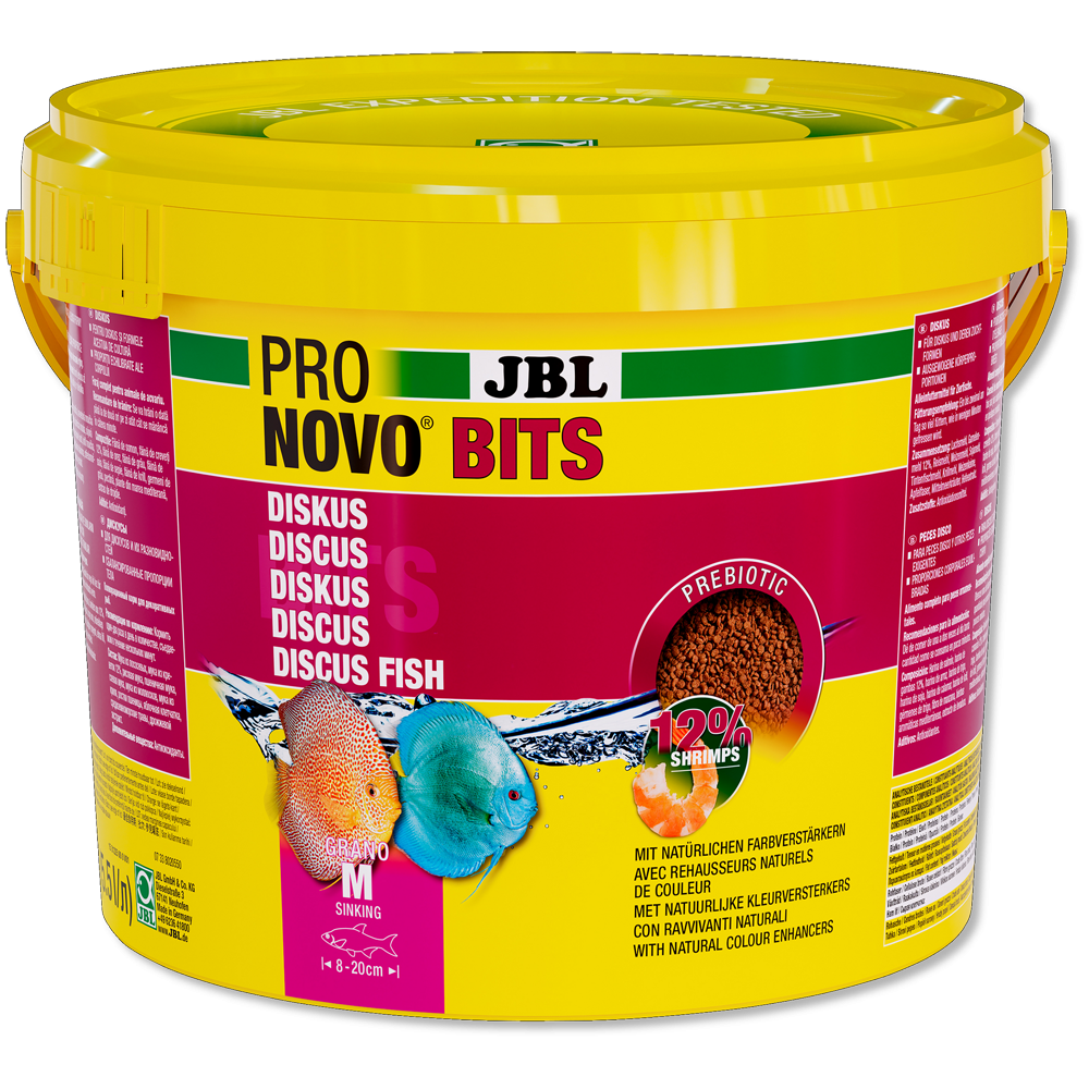 Ciclidele discus și alte specii de ciclide pot fi foarte pretențioși în privința hranei lor. Ne-am gândit la asta când facem JBL PRONOVO BITS și am adăugat ingrediente crude, precum creveții, pe care peștii le consideră irezistibili.