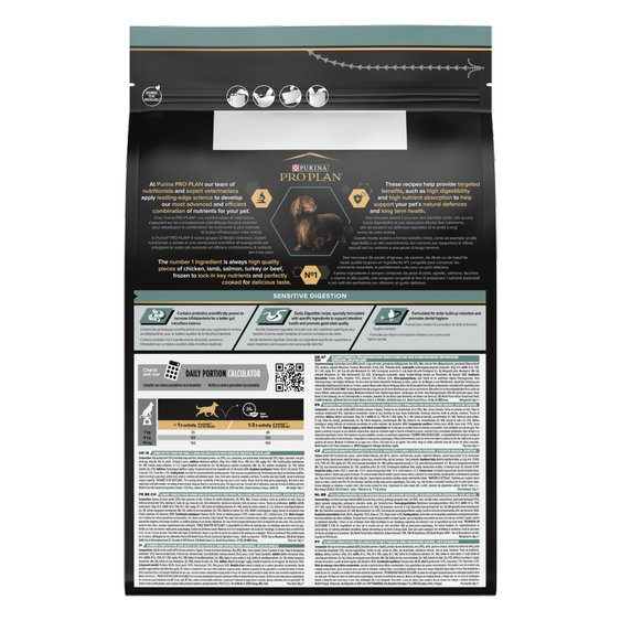 Purina PRO PLAN Digestie Sensibilă SMALL&MINI ADULT a fost dezvoltată pentru câini adulți de talie mică și foarte mică (mai mici de 10kg).