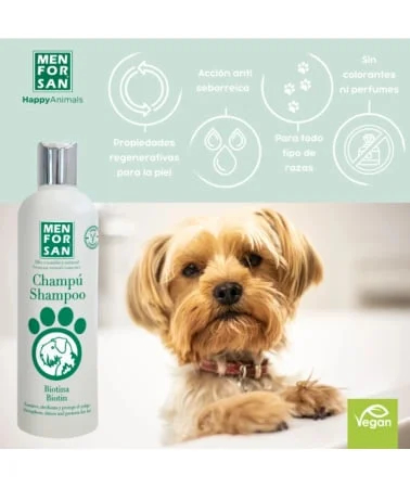 Da. Menforsan Biotin curăță în profunzime și elimină mirosurile specifice, lăsând un parfum discret, care persistă fără a fi deranjant pentru nasul sensibil al câinelui.